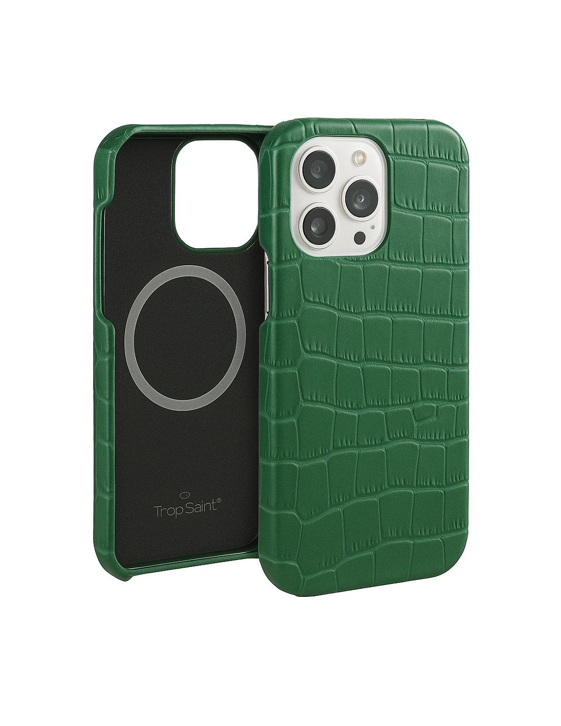 Designed by Trop Saint and inspired by the Saint-Tropez lifestyle, the MagSafe Crocodile-Embossed Leather Case for iPhone blends minimalist design, luxury texture, and reliable daily protection. It expresses the effortless elegance of the French Riviera while remaining practical for everyday use.